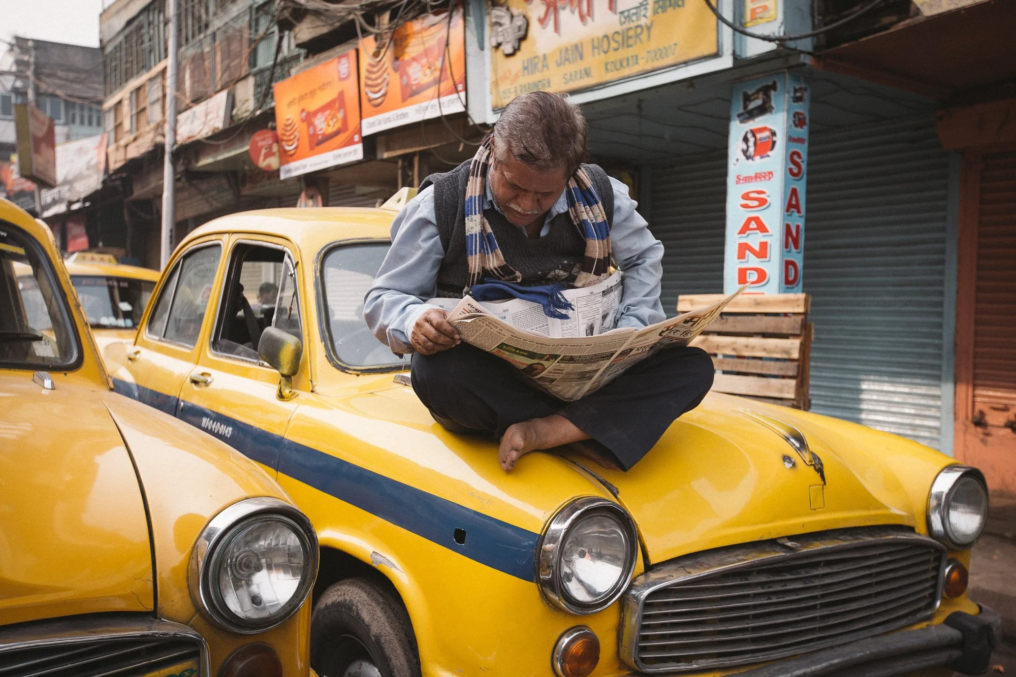 Yet, as the sun of years ascends higher in the sky, casting longer shadows over their proud frames, an uncertain fate now looms. Stringent emissions regulations whisper like age-old sages, hinting at a changing of the guard. The siren songs of Ola and Uber echo through the narrow lanes, singing a new tune—one that threatens to drown out the symphony of the Ambassador's legacy. It was amid this tumultuous crescendo of change that I took up the mantle of capturing the essence, the very heartbeat, of these enduring symbols.